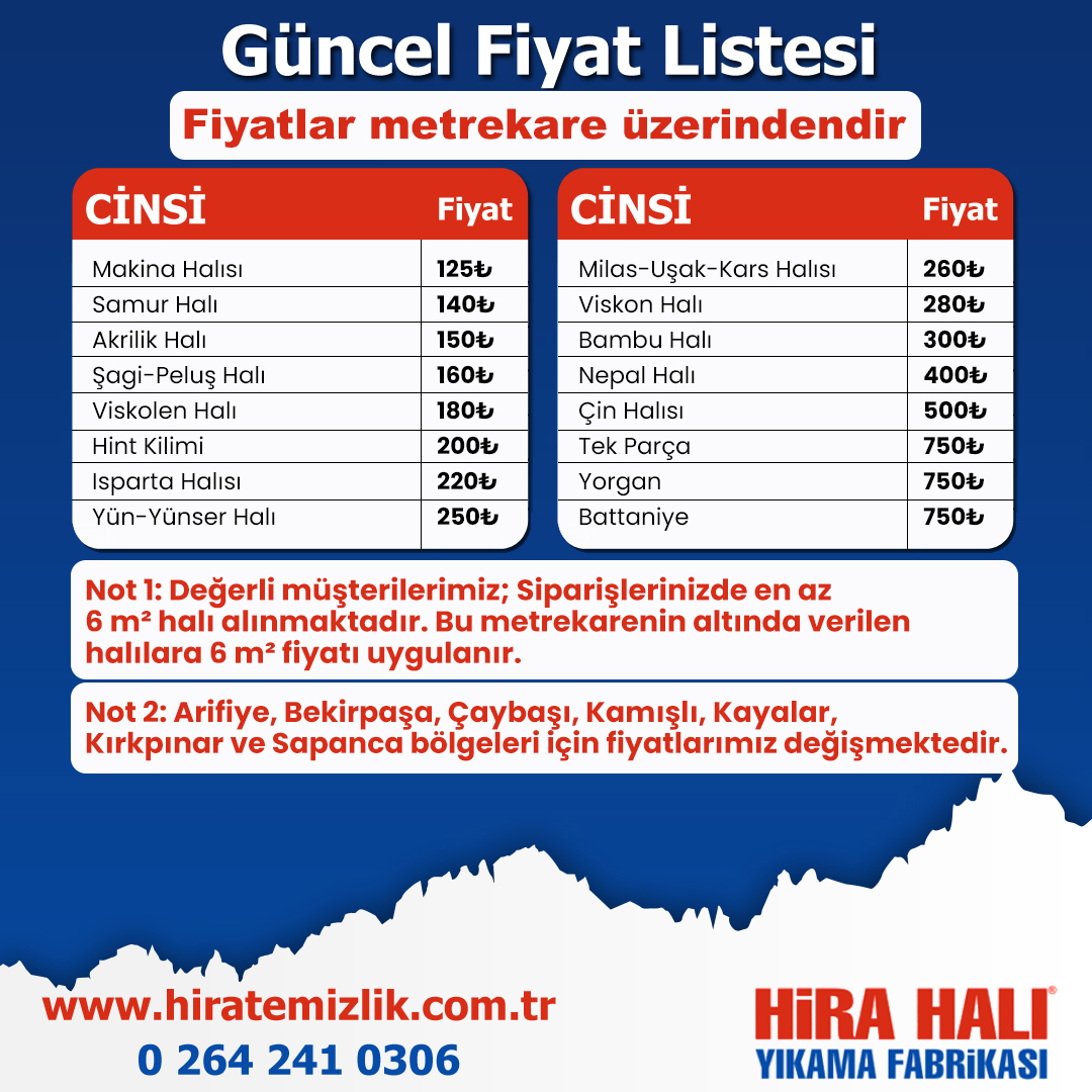 Sakarya'da halı yıkatmak istiyorsanız, fiyatlarımıza bu sayfadan ulaşabilirsiniz.